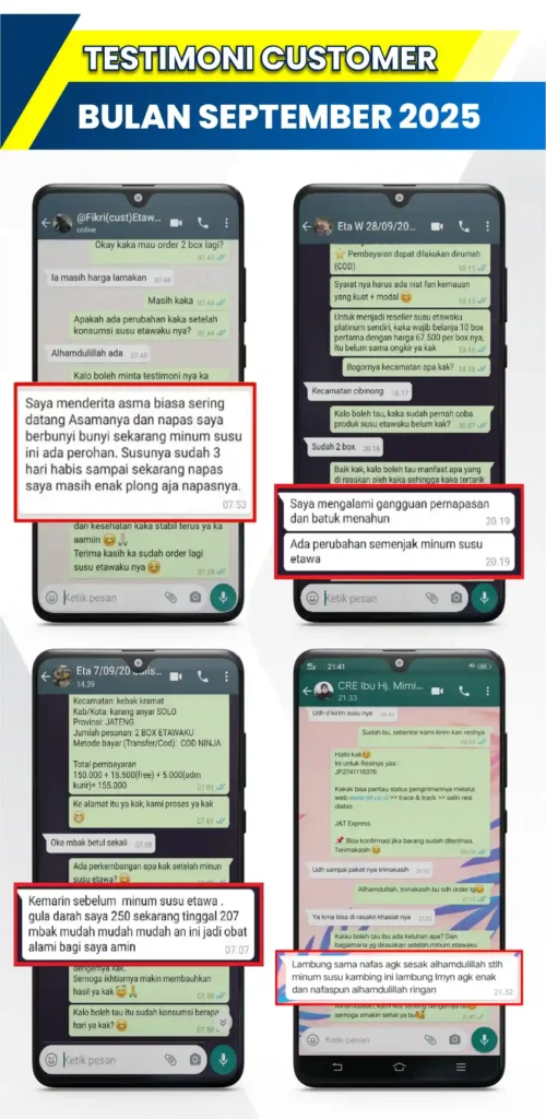 Selain itu, susu kambing etawa juga mampu mengobati berbagai penyakit lain seperti, nyeri tulang dan sendi, mudah lelah, masalah pencernaan, daya tahan tubuh lelah, ASI kurang lancar, kolesterol, hingga diabetes.